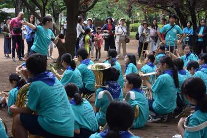 5月19日(日)砧地区緑化祭りが行われ、今年も6年生が鼓笛演奏を行いました。早朝から車を出していただき、大蔵運動公園へ保護者の方々と楽器を運びました。