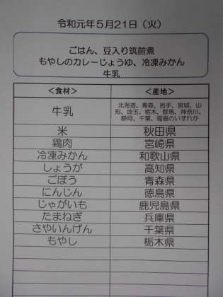 本日の食材産地です。