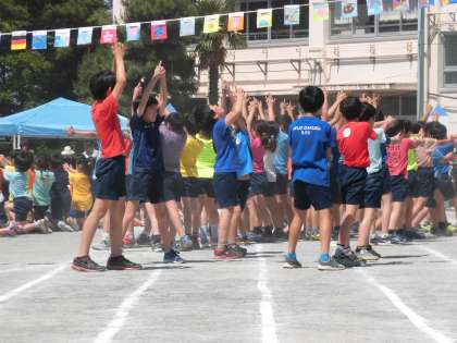 3.4年生による表現は、「ルパン3・4世」です。ルパンや銭形警部になりきって、踊りました。ルパンと峰不二子が登場し、一芝居打つシーンもありました。決めポーズもかっこよく決まりました。