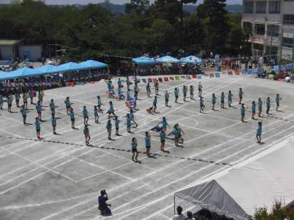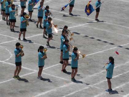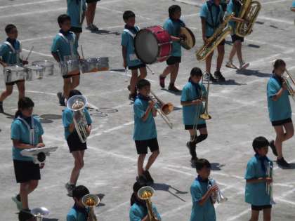 午前の最後は、砧小伝統のマーチングです。先日の緑化祭りからさらに行進が加わり、暑さの中、ずしりとくる楽器を持っての演奏は大変でした。しかし、くるくる変わる隊形も美しく、フラッグの先まで神経の行き届いた演技でした。