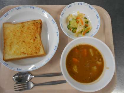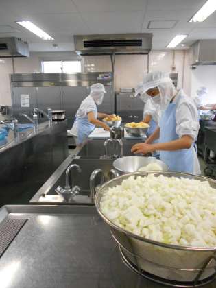 白いんげん豆をつかったシチューです。豆類には栄養が豊富に含まれていますので、こどもたちの好きなシチューにしてみました。写真は食材を切っているところです。