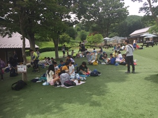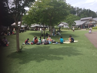 川場村の田園プラザに到着しました。薄日が差し、外での昼食です。