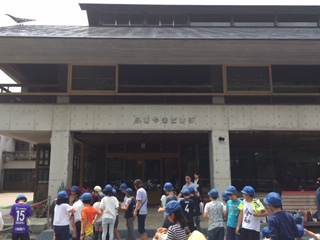 今日から宿泊する、ふじやまビレッジに到着しました。自然の中にある綺麗な施設です。