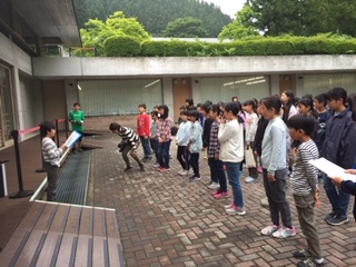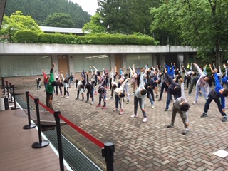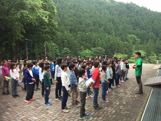 2日目の朝を迎えました。曇り空ではありますが、屋外での朝会となりました。