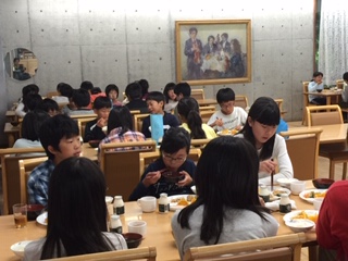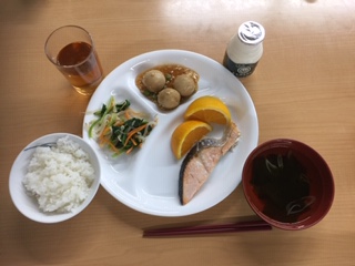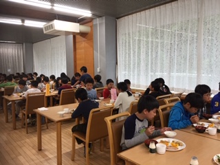 ビレッジの食堂で初めての食事です。今日はハイキングに出かける予定なので、しっかと食事をとります。