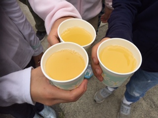 関りんご園にて、りんごジュースをいただきました。1時間ほど歩いてきたので、美味しさが倍増です。