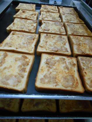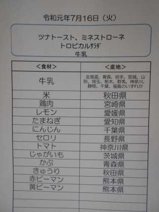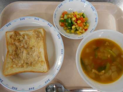 1学期の給食は今日をいれてあと二日となりました。今日の給食では、野菜がたっぷりはいったミネストローネと、夏をイメージしたトロピカルサラダでたくさん野菜をとることができます。ツナトーストは炭水化物とタンパク質を一緒にとることができるので、朝ごはんにおすすめです。写真はツナトーストがやきあがったところです。