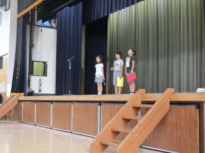 児童代表の言葉は三年生でした。3人とも堂々と一学期の振り返りや、二学期頑張りたいことを発表していました。