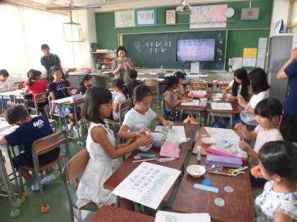 夏の思い出をテーマに、紙粘土で作品を作りました。