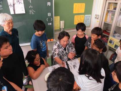 筆の持ち方から、力の入れ方、墨の濃淡などたくさんのことを教えていただき、墨で上手に絵をかくことができました。