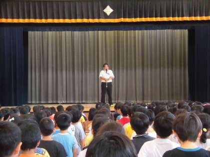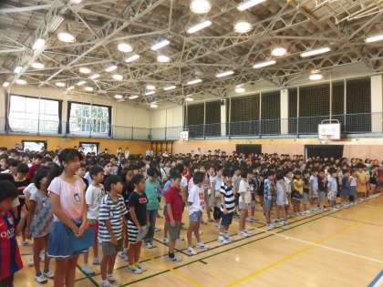全校児童が体育館に集まり、8時40分から始業式が始まりました。