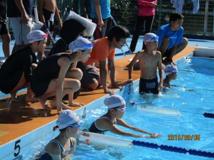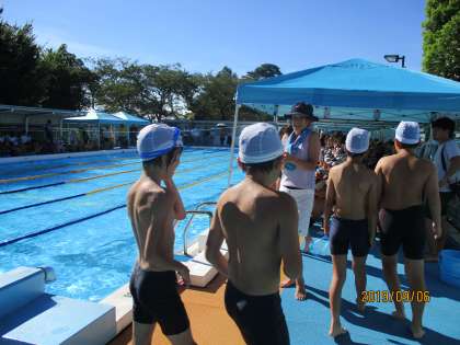 今日、努力が実り、自分の会心の泳ぎができた子や最高タイムが出た子もいました。また、実は水泳が苦手な子が、必死に泳ぎ切る姿にも、胸を打つものがありました。中には、納得のいく泳ぎができず、悔しそうな子もいました。しかし、それぞれが真剣に取り組んでいました。友達に声援を送る姿もすがすがしく、見ていて、嬉しくなる水泳記録会でした。たくさんの保護者の方にも応援していただきまして、ありがとうございました。