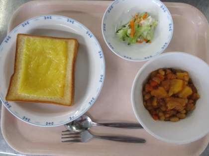 ポークビーンズはアメリカの家庭料理です。豚肉と豆と野菜をトマト味で煮こんでつくります。たんぱく質がたくさんとれるので、成長期のこどもたちにぴったりの料理です。