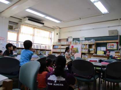 今日のお話給食は「給食番長のカレーライス」です。給食番長の絵本はこどもたちにとても人気があります。1年2組は4時間目に司書の先生に読み聞かせをしてもらいました。「どんなカレーが出てくるのかな?」と楽しみにしている様子でした。カレーライスはいつも以上にとても好評でした。