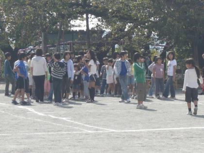 さわやかな秋晴れの下、お昼休みに6年生の班長さんを中心になかよし班で楽しく遊ぶことができました。