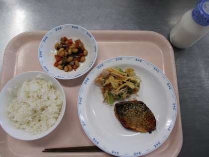 今日は和食の献立です。おはしをじょうずに使って食べることができました。写真は魚の七味焼きが焼きあがったところです。さばににんにく、しょうが、ネギなどの香味野菜としょうゆ、酒、みりんなどの調味料を漬け込んでから焼きました。