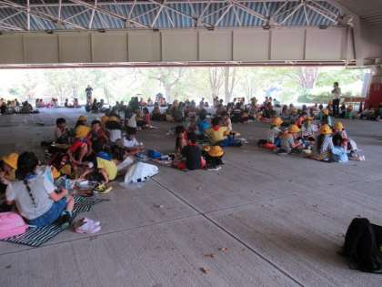 お昼ご飯は、家から持ってきた美味しいお弁当です。たくさん遊んだので、おなかがすきました。みんなたくさん食べましたね。