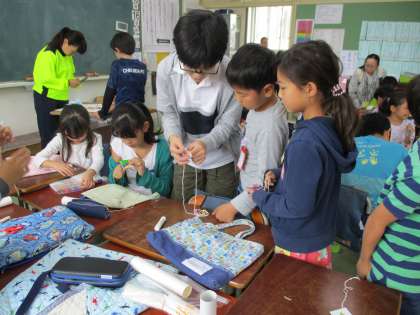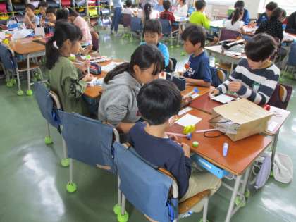 10月16日、なかよし班ロング集会「作って遊ぼう 砧っこランド」を行いました。台風の影響で、今日に延期されたものです。何を作りたいかメンバーに意見を聞くところから始まり、調整や材料の準備、メンバーへの連絡、会の運営などを、班長である6年生が行ってきました。今日は、ぶんぶんごまやミニパラシュート作りをなどを上級生が下級生に教えながら、共に楽しむ姿が見られました。自作のおもちゃで遊ぶのも楽しそうでした。