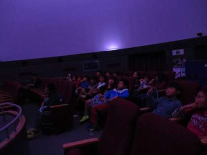 プラネタリウムでは、ドームの下方にぐるりと本校の景色が映し出され、そこに今夜の夜空が浮かび上がり、子どもたちは感嘆の声を上げていました。