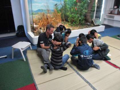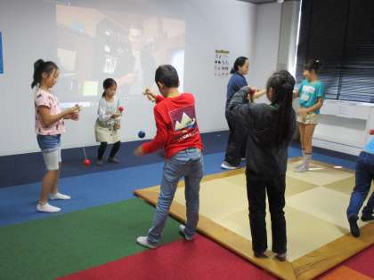 次は、グループに分かれて、活動します。郷土紹介カルタを行ったり、剣玉に挑戦したり、プレゼントごっこをしたり、ダンスをしたり、それぞれネイティブのリーダーの指導の下、楽しく活動しました。いつもお世話になっているミシェル先生もいらっしゃり、リラックスして学べました。