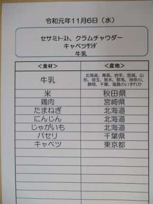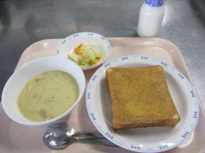 今日はすりごまをたっぷりとれるセサミトーストです。ごまには、カルシウム、マグネシウム、鉄分など不足しがちな栄養がふくまれています。ごまに含まれているビタミンEは、抗酸化作用があり若返りのビタミンとも呼ばれています。写真はセサミトーストを作っている様子です。