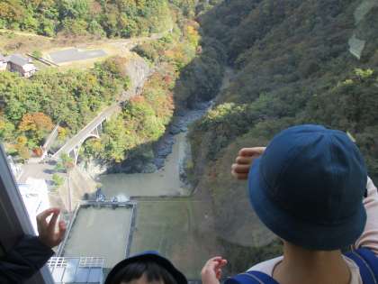 再びバスに乗り、小河内ダムへ向かいました。展望台からは、青いダムの様子がよく見えました。これらの水が、長い旅を経て、自分の家の蛇口へ届いていると思うと、不思議でした。最後に、水と緑のふれあい館で、水源林やダムを守る人々の様子などを教わりました。何気なく蛇口をひねると水が出るのが当たり前のように思っていますが、実際に水源を見てみると水を守る多くの仕組みのおかげで、安全な水をいつも使うことができるのだと実感した1日でした。