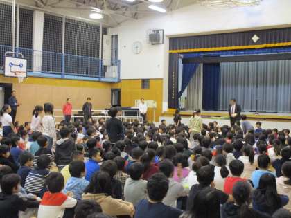 また、消防写生会入選の子どもたちの紹介や、看護当番の先生から今週の目標についてのお話がありました。