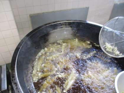 今日はししゃもを天ぷらにしました。さくさくとした衣でおいしく食べられます。写真はししゃもを揚げているところです。