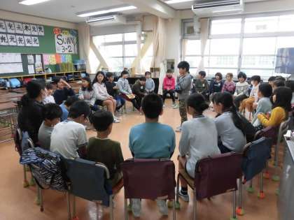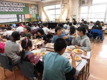 2学期中なかよし班で何度も遊んでいるので、前回の給食よりも楽しそうに話す子どもたち。