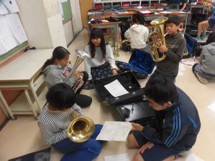 6年生は楽器の鳴らし方だけでなく、「〜な時があったから、○○しておくといいよ。」など自分の経験をふまえながら今後のアドバイスもしていました。