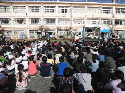 起震車の中があまりに揺れるので、見ている子どもたちからは「こわーい!」「ちゃんとつかまって−!」などの声も出ました。