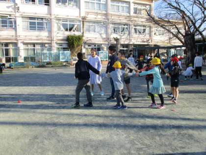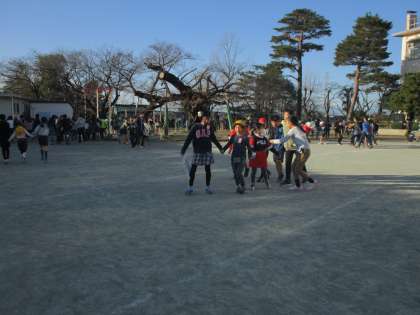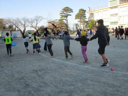 今朝は、児童集会もありました。なかよし班ごとに、自分たちのチームのテープが張られた紅白玉を1つずつ、校庭中から探します。その際、なかよし班のメンバーは、手をつないだまま探すというルールでした。聞くと、集会委員が自分たちで考えたゲームだそうです。「なかよし班の人たちと一層仲良くなってください」とねらいが語られ、ゲームが始まりました。7〜8人が手をつないで、並んで歩く姿が校庭中に広がりました。和やかなひとときでした。