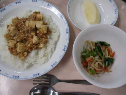 麻婆豆腐丼も人気のある献立のひとつです。豆腐には栄養がたくさんふくまれているので、積極的に食べてほしい食品です。どんぶりにすると食べやすく、おすすめです。