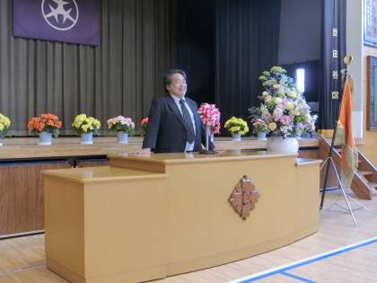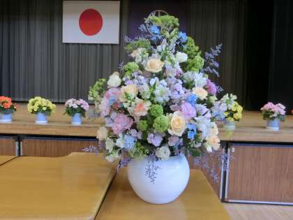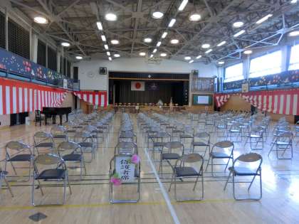 4月6日は、例年、始業式・入学式が行われる日です。特に、体育館は、紅白幕と花で飾り、入学式の準備を整えてありました。