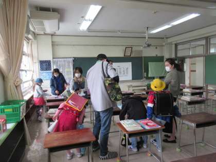 2・3年生は、重さは多少あるものの、新しい教科書を受け取ることができた嬉しさがいっぱいでした。4年生は、高学年の仲間入りしたことが伝わってくるような、教科書の厚さでした。でも、新しい教科書を手に取って、やる気も出てきたようです。