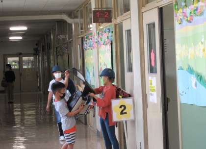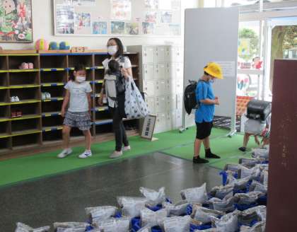 1年生には、家庭での学習プリントとともに、アサガオの栽培セットを配布しています。