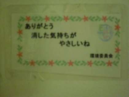 ◎ 照明のスイッチのところには、「ありがとう 消した気持ちが うれしいね」と、