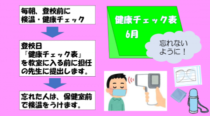 『健康チェック表』は登校日に担任の先生に提出することになっています。