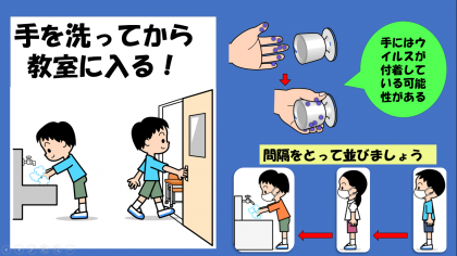 手洗い場やトイレなどでも、身体的距離をとるようにしましょう。