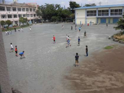 休み時間には、広い校庭を端から端まで使っておにごっこを楽しむ子もいました。