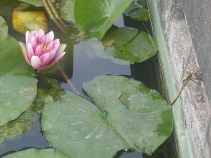 朝、校長室前の池の縁に、羽化したばかりのトンボがとまっていました。子どもたちは、歓喜の声で発見した喜びを表していました。