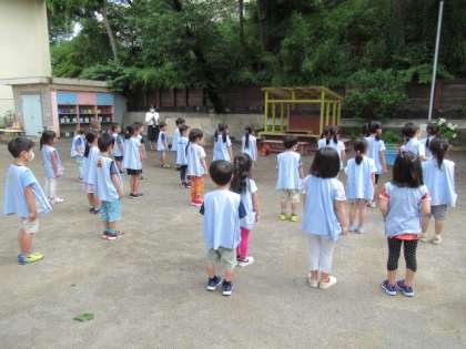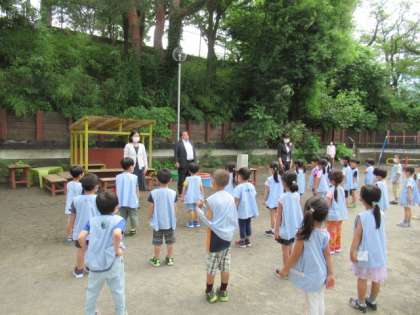 年少組さんは、先生やたくさんの友達に会うことができて嬉しそうでした。皆さんが、「幼稚園、大好き!」になって慣れていってくれることを願っています。