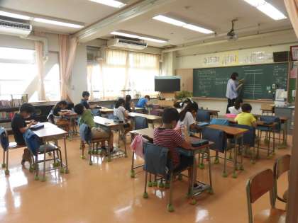 2年生は算数のテストです。皆真剣に取り組んでいました。