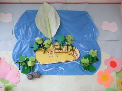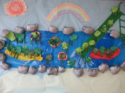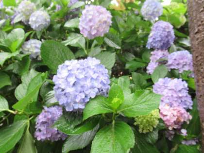 砧幼稚園のピョンピョンがえるとアジサイが喜んでいます。
