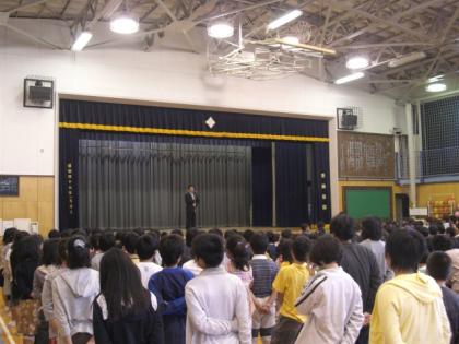 今日は校長先生から、谷村さん(10月2日に6年生が、環境学習で廃油を使っての石鹸作りをしたときの講師)からいただいた手紙の紹介がありました。水の大切さや奇跡の星と言われている地球に生きていることのすばらしさ、そして、何よりも毎日、今のような暮らしができることに感謝して生きていきたいですね。というメッセージでした。子どもたちは一人一人真剣に聞いていました。