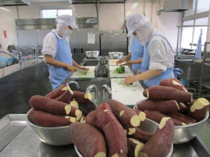 感染症予防の観点から行っている簡易給食は本日最終日でした。来週から給食当番が配膳します。簡易給食よりは品数が増えますが、配膳に時間がかからないよう、品数を制限した献立となっています。写真はシチューの材料を切っているところです。