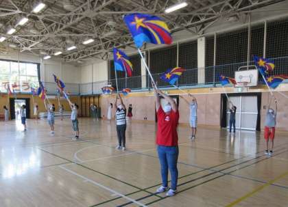 それでも、昨日より、今日の方が、リズムよく、音階もしっかり出るようになっているのは、さすが6年生です。体育館では、フラッグ隊の練習です。キレのいい動きになってくると旗の音も閉まってきます。