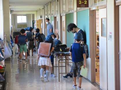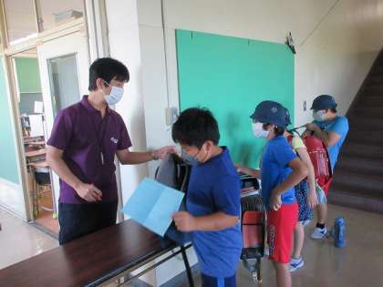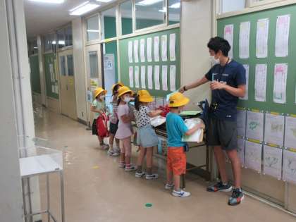 朝登校してくると子ども達は、教室前で検温表を出し、体調のチェックを受けます。