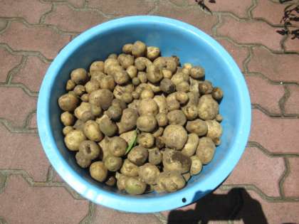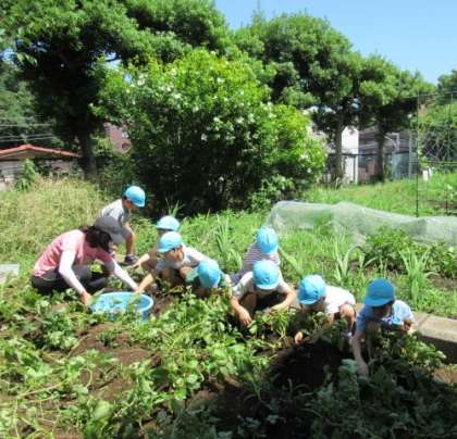 年長ほし組さんが、ジャガイモほりをしました。大きなジャガイモ、小さなジャガイモ、たくさん収穫できました。