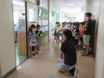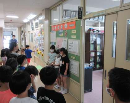 1年生が入学してくると、2年生が学校探検のガイド役を務める学習があります。